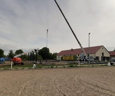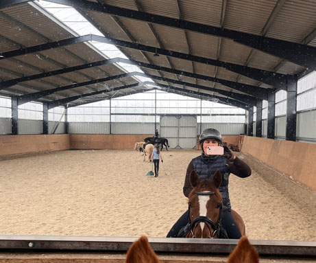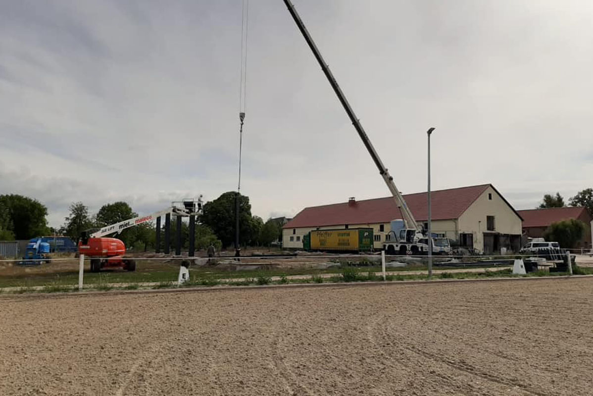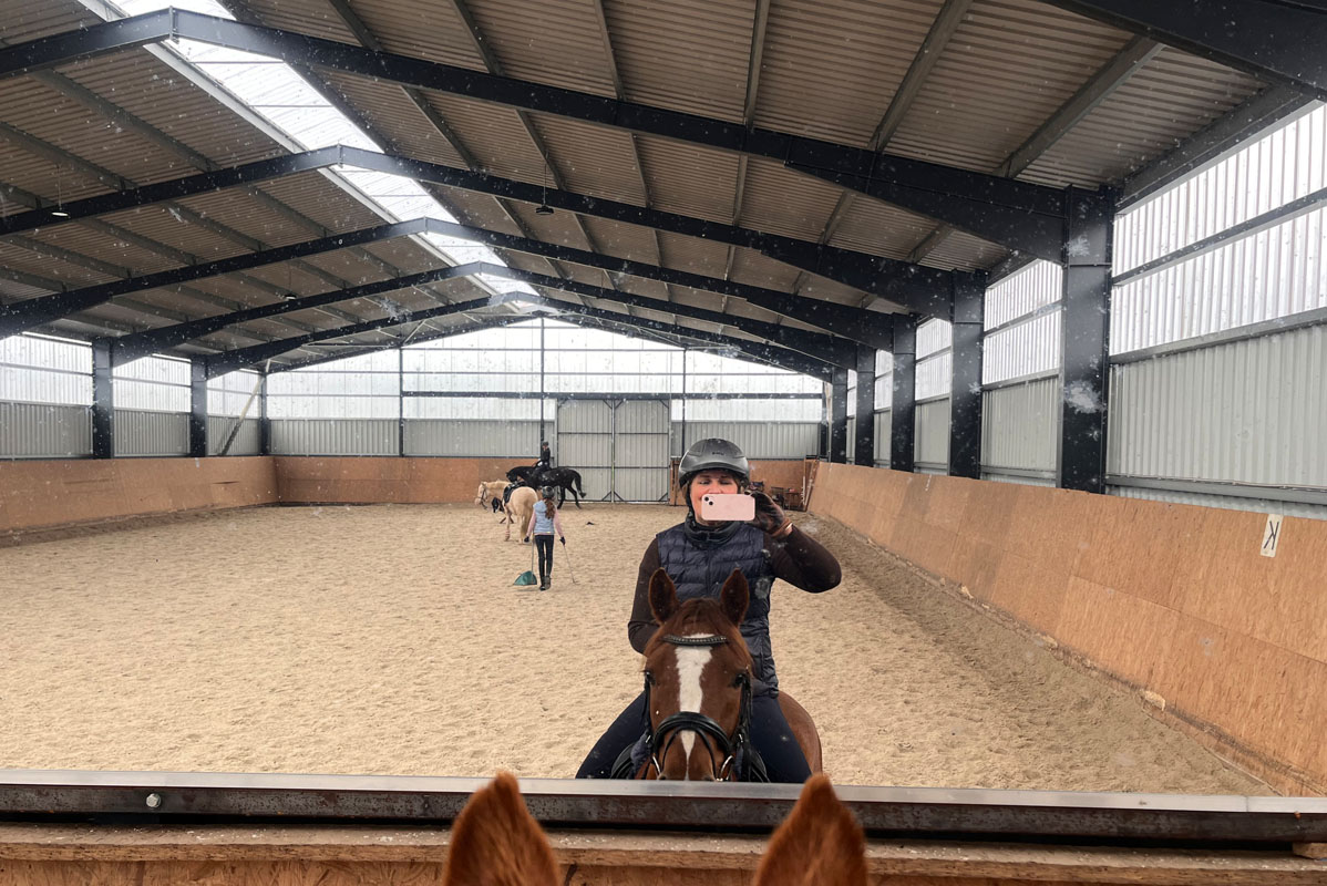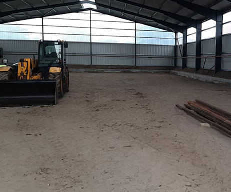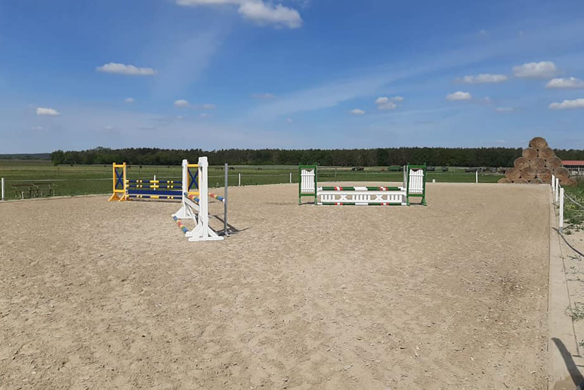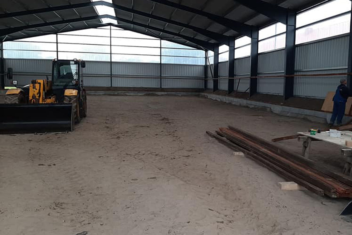 Die Reithalle, die eine Größe von 25x40 Metern aufweist, wurde im Jahr 2020 errichtet. Bei ihrem Bau wurde besonderer Wert auf Qualität gelegt, einschließlich der Verwendung eines Ebbe-Flut-Systems. Seitdem wird die Reithalle sorgfältig gepflegt und in bestem Zustand gehalten, um den Bedürfnissen der Pferde und Reiter gerecht zu werden.
